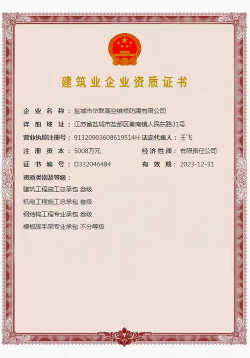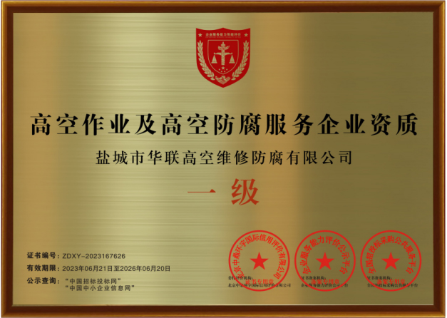 鹽城市華聯高空維修防腐有限公司始建于上世紀八十年代,系專業從事風力發電機塔筒防腐,塔筒維護,塔筒補漆,塔筒噴字等工程。不停產,不搭手架,高空懸吊施工的一級高空安全資質、一級高空防腐施工資質、二級建筑施工資質的高空建修、防腐工程、公司。現已發展集科研、設計、施工為一體的的江蘇省較大的高空建修,高空防腐施工企業;公司注冊資金3008萬元,流動資金8000多萬元;擁有高修技術科研高修工程設計、高修工程施工三大技術與施工組織體系;公司擁有一流的技術施工隊伍,其中有高級職稱36 名,中級職稱126人。具備一級防腐資質、一級安全資質及二級建筑資質,公司下轄五個分公司和十八個辦事處,為全國數百家企業解決了若干“高、大、難”的特殊工程項目,填補了我國建筑史上的空白。      風電塔筒分公司專業承接風電場風機塔筒維護,風機塔筒除銹防腐,風機塔筒油漆修補,風機塔筒噴字寫字,風機塔筒vi標識施工公司等工程的施工,主要應用于風力發電公司、風電場、風電塔筒制造廠家以及風力發電機主機廠家。公司承諾:凡由我司施工過的單位,在保質期內我司定期回訪或電話聯絡,詢問工程質量情況;若在保質期內有質量問題我司免費維修。       我公司先后為江蘇龍源風力發電有限公司、河北龍源風力發電有限公司、海南龍源風力發電有限公司峨蔓風電場、云南龍源風力發電有限公司楊梅山風電場、龍源雄亞福清風力發電有限公司、龍源平潭風力發電有限公司、龍源莆田風力發電有限責任公司、福建東山澳仔山風電開發有限公司、福建省平潭長江澳風電開發有限公司、龍源(濱州)風力發電有限公司、龍源(張家口)風力發電有限公司、江蘇保龍塔筒制造有限公司、江蘇宇杰鋼機有限公司、江蘇金鋒佳特機電有限公司、無錫寶南機械制造有限公司、上海電氣風能設備有限公司、國華瑞豐榮成風力發電有限公司、中電國際新能源有限公司、中節能甘肅風力發電有限公司、中船重工重慶海裝風電設備有限公司、內蒙古金崗重工有限公司、內蒙古三興重工有限公司、內蒙古新錦風力發電有限公司、內蒙古國網新源控股有限公司、內蒙古同盛風電設備有限公司、內蒙古國電投資股份有限公司風電分公司、山東長島風力發電有限責任公司、中國石油天然氣第七建設公司、甘肅中電科耀新能源裝備有限公司、葛洲壩集團機電建設有限公司、中國華電重工集團有限公司、北京京能新能源有限公司、通榆東寶風電塔筒制造有限公司等風力發電機塔筒進行維護、防腐、刷漆、補漆、清洗、噴字、寫字以及葉片的清洗、防腐、探傷、檢修、美化等項目。由于風場的特殊氣候和風速的影響,經過我公司與各公司風場的配合以及我公司嚴格的管理規章制度,所有的項目都順利完工并驗收合格質量優。 華聯的昨天感謝您的信任和關心 華聯的明天更需要您的厚愛和支持 華聯人將不斷拓新進取,為人類的發展建設和生態環境的保護作出更大的貢獻...